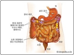 장 내 세균 작용 – 유익균과 유해균이 음식물을 분해하면서 가스를 형성