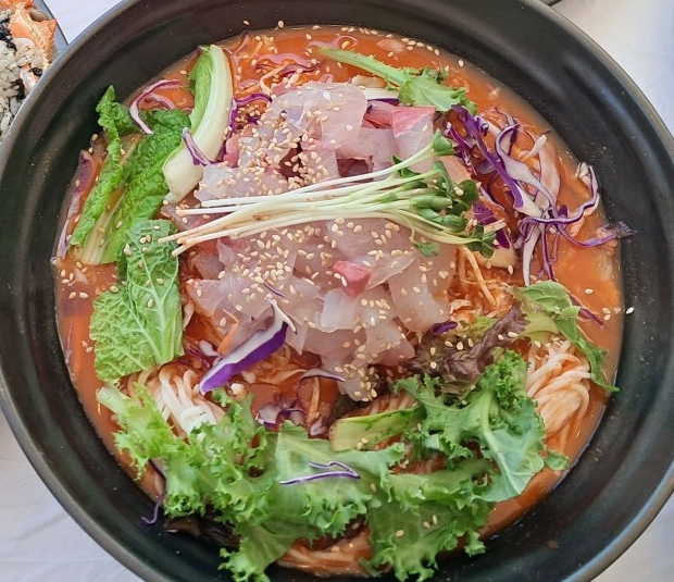 해미가는 진리해변 근처의 숨겨진 맛집으로, 꾸준한 단골 손님들이 입소문으로 알려진 곳입니다. 매콤하면서도 깔끔한 육수와 함께, 푸짐하게 들어간 해산물이 특징입니다. 참기름과 채소가 어우러져 깊은 풍미를 느낄 수 있으며, 직원들의 친절하고 세심한 서비스로 만족도가 높은 편입니다. 깔끔한 실내와 정갈한 분위기 덕분에 혼밥 또는 커플 손님에게도 인기가 많습니다.