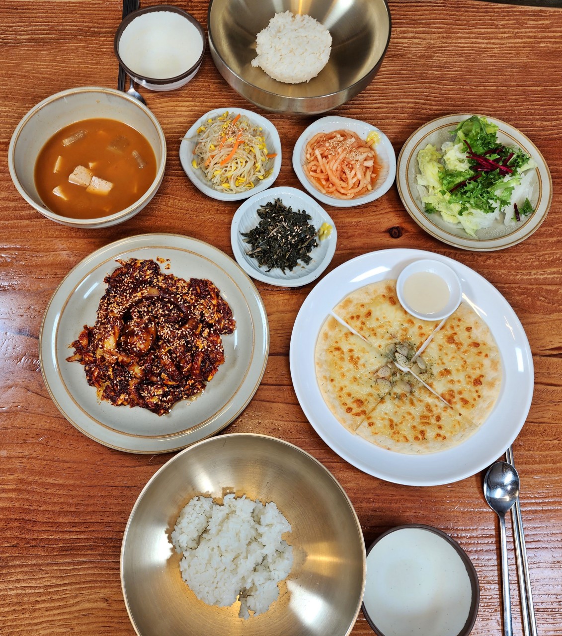 매콤한 주꾸미볶음과 신선한 보쌈을 함께 즐길 수 있는 인기 맛집.