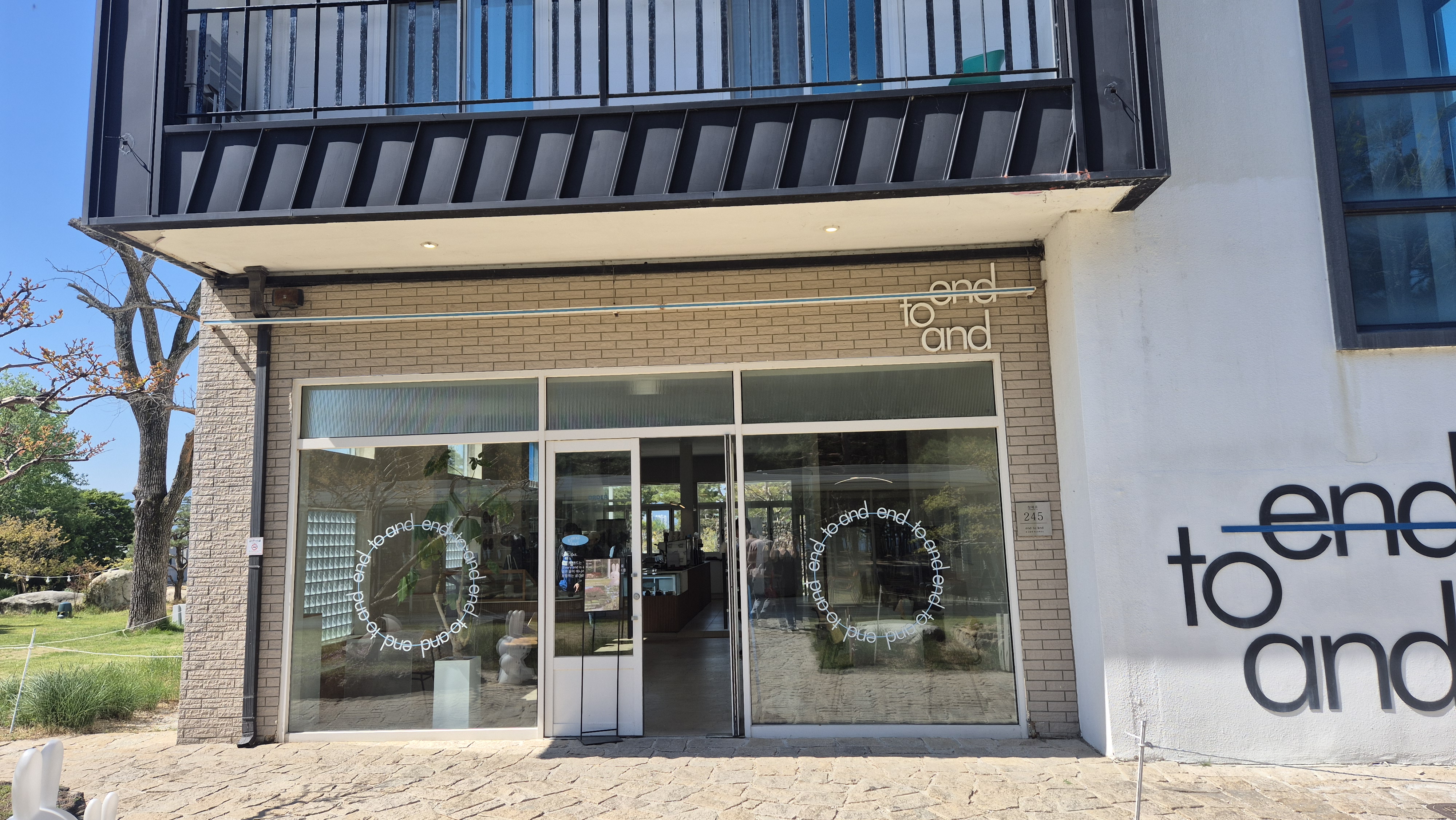 강릉 강문 해변 바로 앞에 위치한 ‘엔드 투 앤드(End to And)’는 감성적인 외관과 넓은 정원이 돋보이는 복합공간입니다. 1층은 카페, 2층부터는 '강문애'라는 이름의 게스트하우스로 운영돼요.