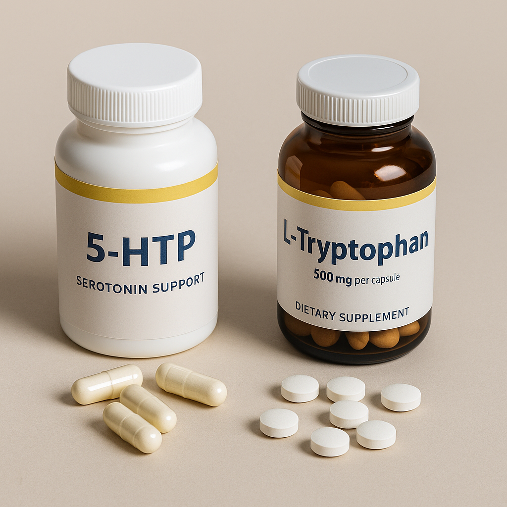 세로토닌은 직접 섭취할 수 없기 때문에, 전구체인 트립토판이나 5-HTP 형태로 보충하게 됩니다.