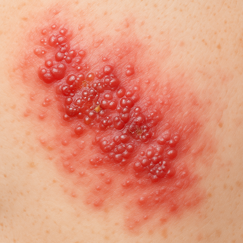 대상포진은 수두 바이러스가 신경절에 잠복해 있다가 면역력이 떨어질 때 재활성화되어 생기는 질환입니다. 피부 발진과 심한 신경통이 동반되며, 주로 50대 이상이나 과로, 스트레스가 심할 때 발생합니다.