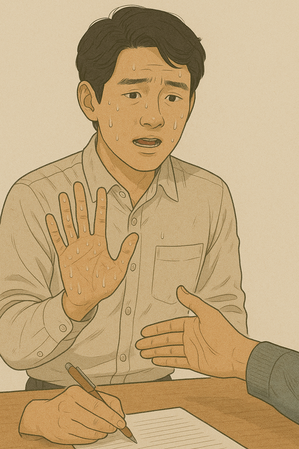 - 평소 손에 땀이 많아 악수나 필기 시 불편한 경우