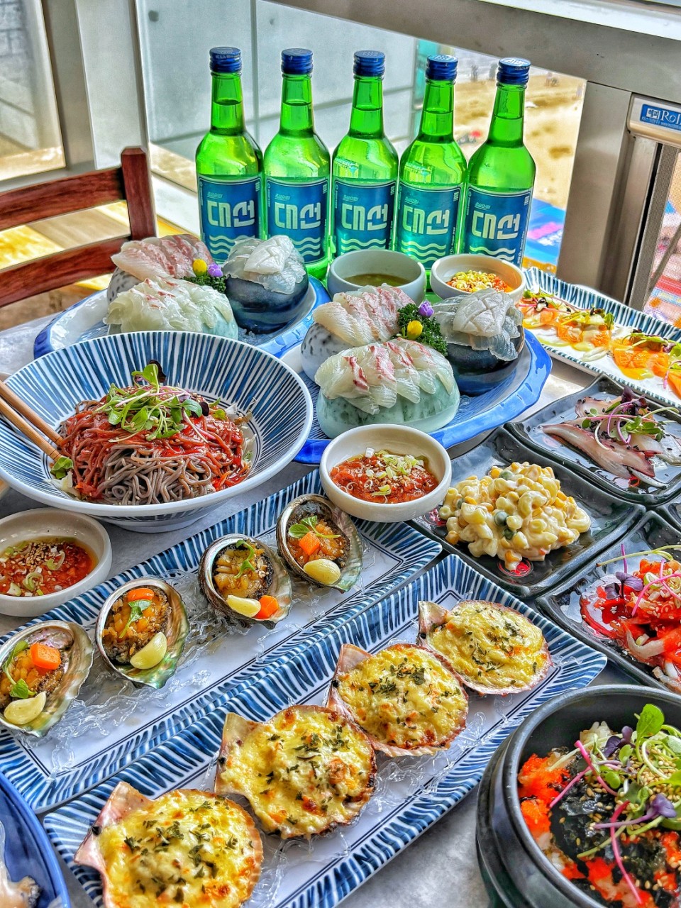 전복, 해삼, 멍게, 개불까지 다 맛볼 수 있어요.