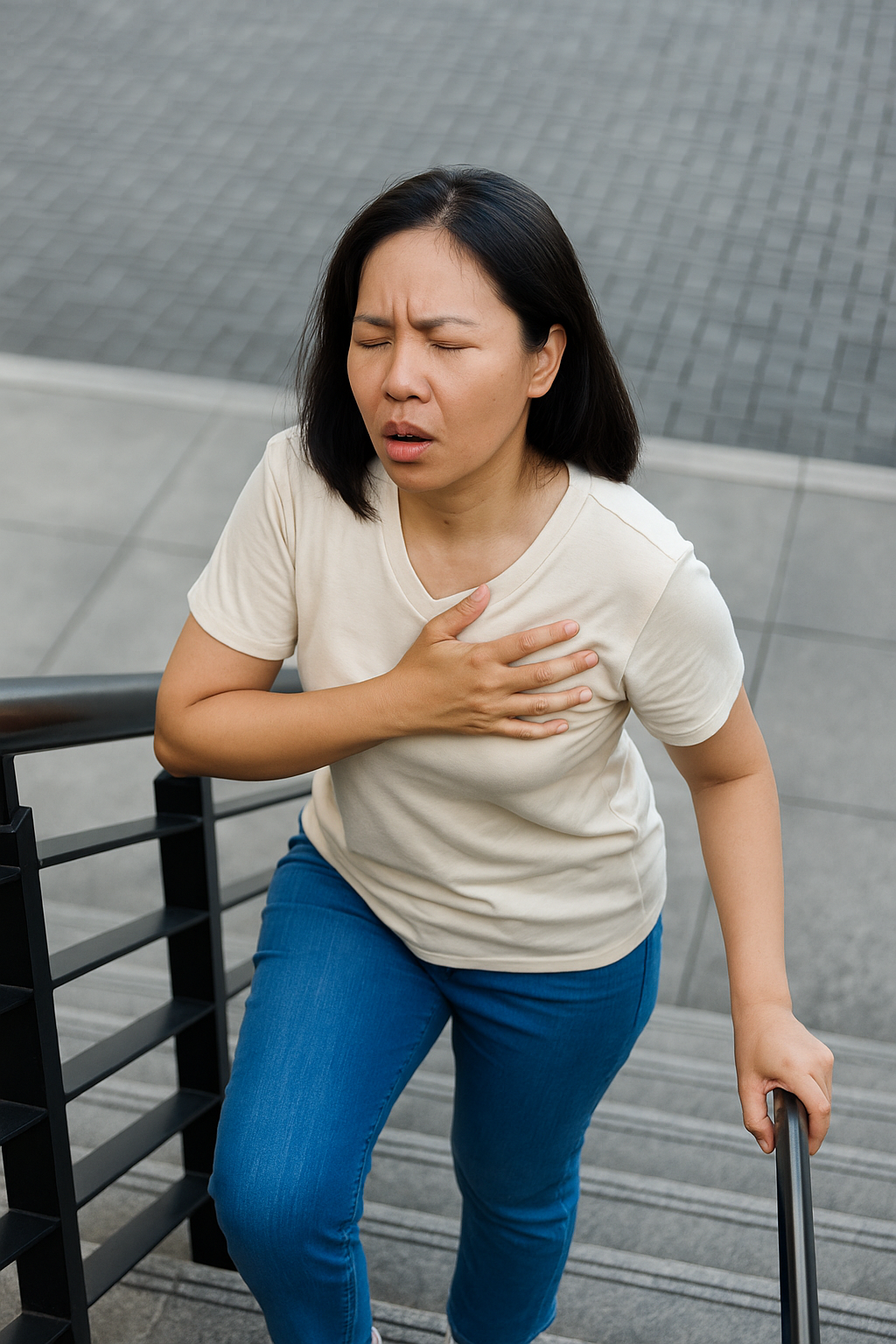 - 숨 가쁨 – 계단을 오를 때 쉽게 숨이 참
