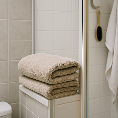 욕실에 젖은 수건을 두면 습도 유지 시간이 길어지고 곰팡이균이 활성화되기 쉽습니다. 사용한 수건은 욕실 밖에서 건조하세요.
