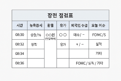 시장분석 없이 종목만 본다면, 방향성 없는 운전과 같습니다. 장전 체크리스트는 시장의 단기 흐름, 수급 상황, 투자심리를 빠르게 파악할 수 있는 루틴입니다.