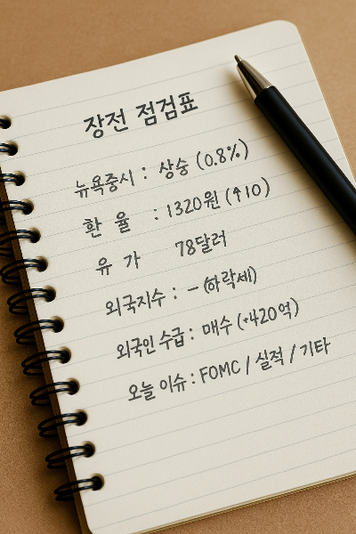 특히 주식 초보일수록 시장의 방향성을 예측하지 못하고 종목만 좇다 보면, 결과는 늘 비슷합니다. 그래서 오늘은 10분 안에 끝내는 '장전 체크리스트'로 누구나 손쉽게 시장을 점검하고 빠르게 대응하는 방법을 정리했습니다.