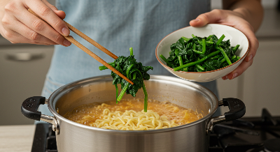 라면 끓일 때 마지막에 데쳐 넣으면 아삭함과 영양 모두 살릴 수 있습니다.