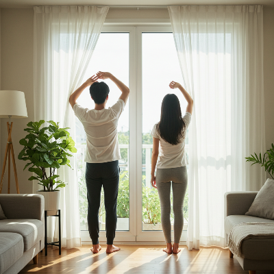- 기상 즉시 햇빛 10–15분(실외가 어려우면 창가라도)