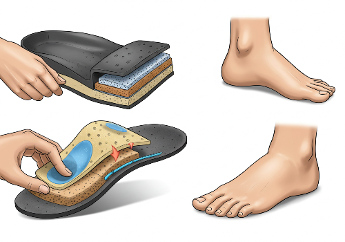 - 발 구조 보조 도구: 맞춤 깔창, 아치 지지 보조기 사용