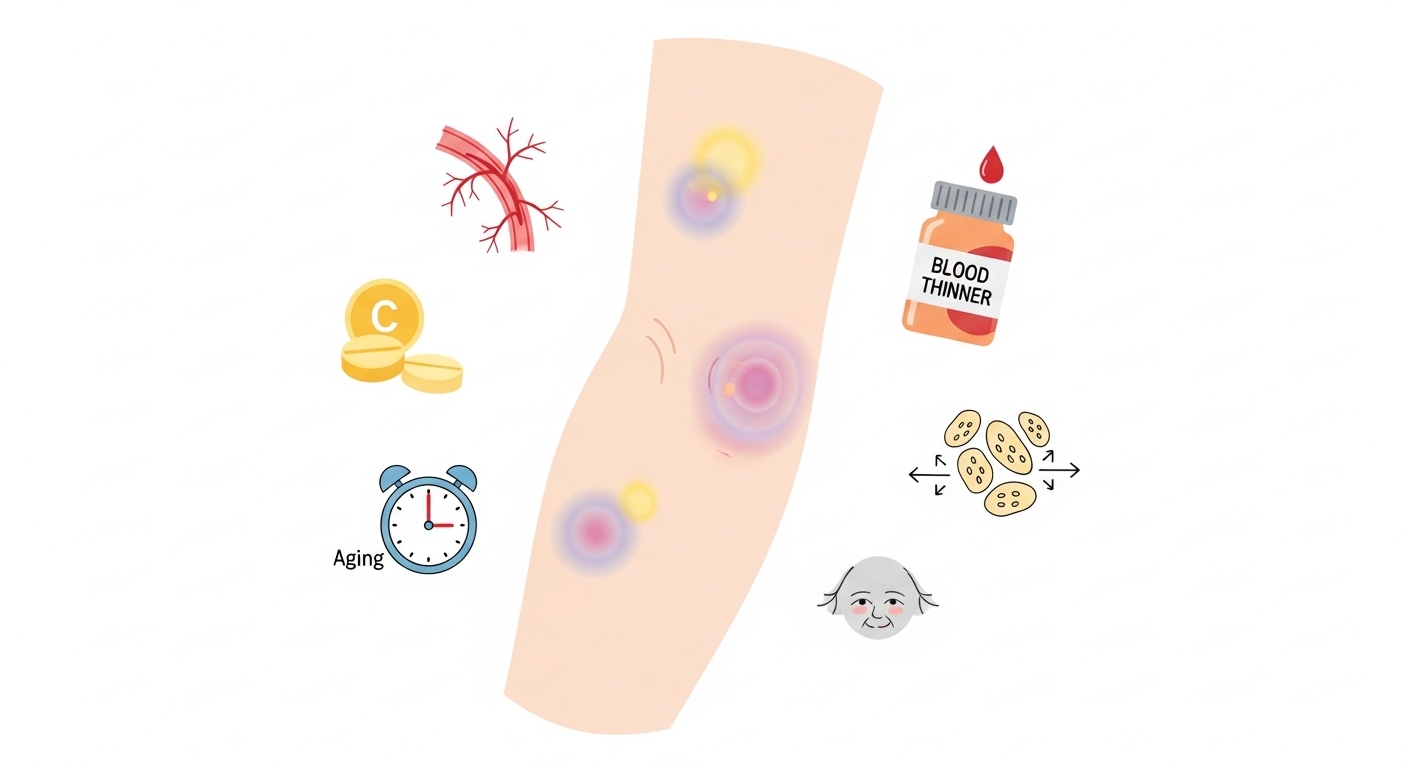 멍 잘 드는 이유는 노화로 약해진 혈관, 비타민 C·K 부족, 약물 부작용, 혈소판 감소, 혈액 질환, 간·신장 질환, 과도한 운동 등 다양합니다. 혈관 약한 사람은 비타민 C·K 섭취, 충돌 조심, 자외선 차단, 보습으로 관리할 수 있습니다.