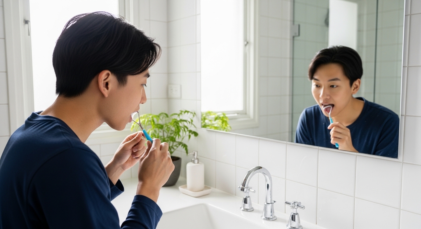 - 혀 닦기: 화장실에서 간단히